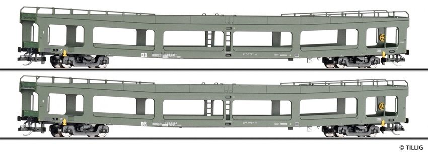 Art.-Nr.: 01135 Autotransportwagen-Set der DR, bestehend aus zwei Autotransportwagen DDm, Ep. IV |