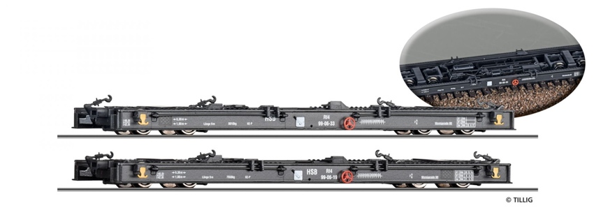 Art.-Nr.: 15974 Güterwagenset der HSB, bestehend aus zwei Schmalspur Rollwagen Rf4, Ep. V |