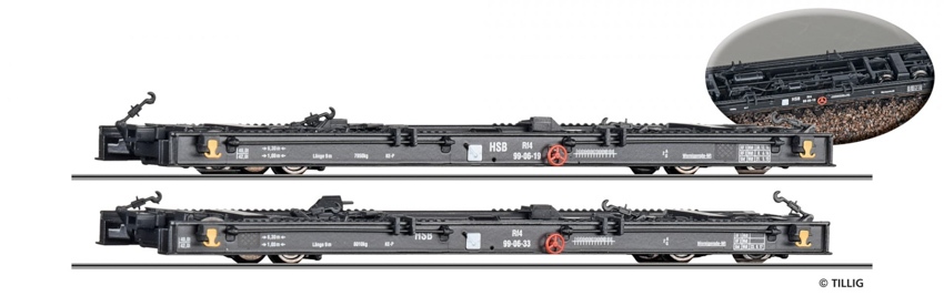 Art.-Nr.: 05974 Güterwagenset der HSB, bestehend aus zwei Schmalspur Rollwagen Rf4, Ep. V |